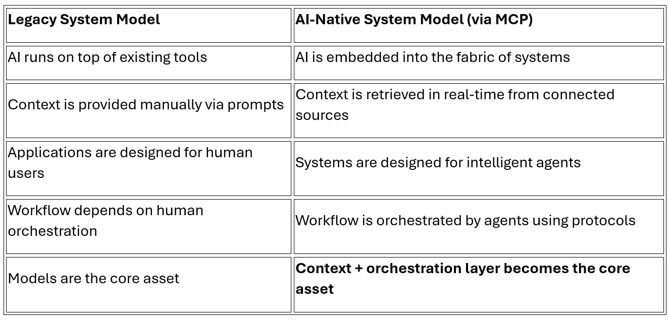 The emerging shift is toward AI-native system architecture—where intelligent agents can continuously interact with their environments, access live data, perform actions, and adapt in real time.