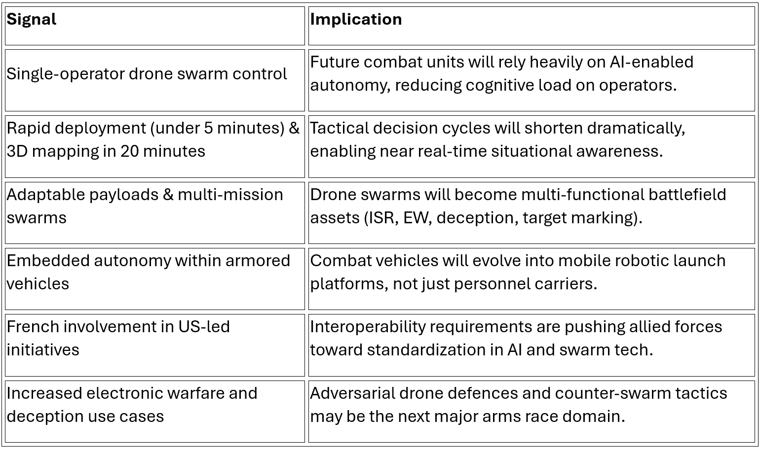 The French Foreign Legion tested “automated hives” — vehicle-based systems that let one operator quickly launch and control multiple drones — during exercises in France and at the U.S. Army’s Capstone 5 in California. The Infantry Robotic Intelligence Section (SRRI) deployed a swarm of aerial drones from a Griffon Multi-Role Armored Vehicle (VBMR), showcasing the rapid advancements in autonomous systems.