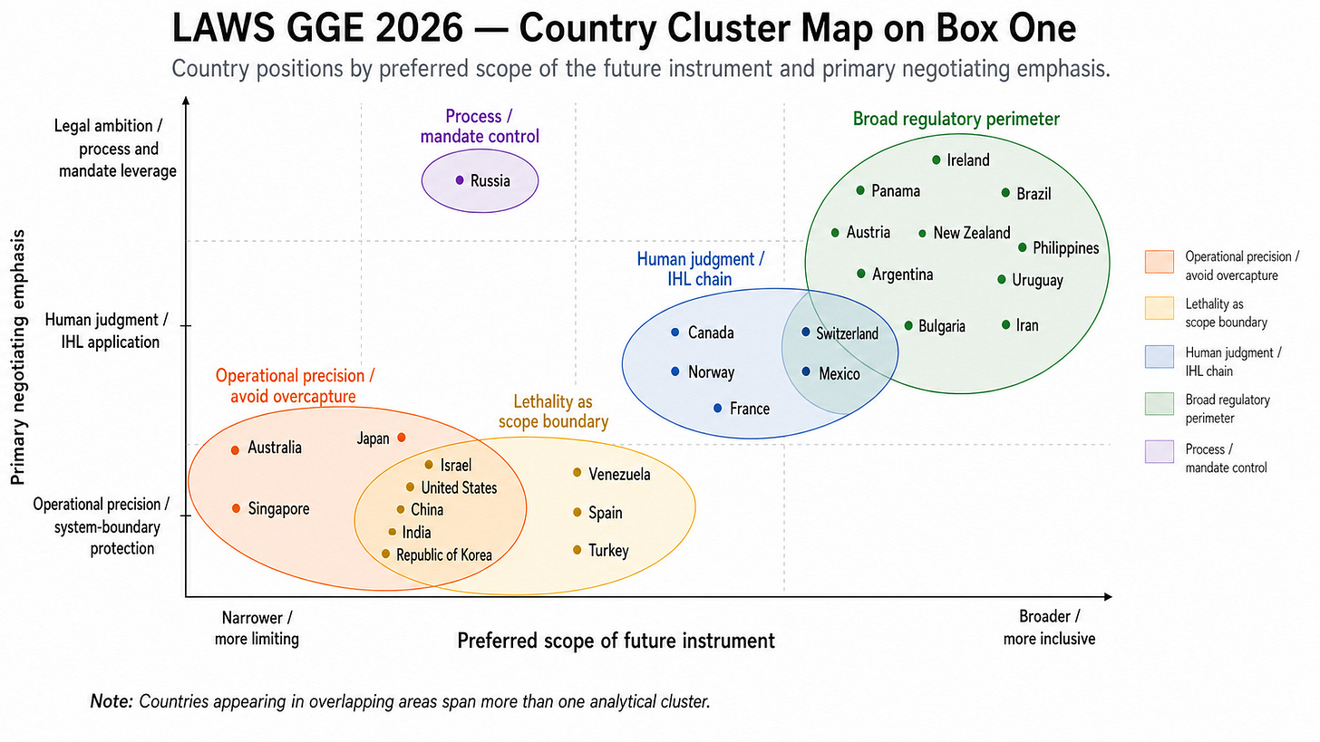 These states are less fixated on hardware and more on whether human judgment remains meaningful for distinction, proportionality, precautions, and accountability.